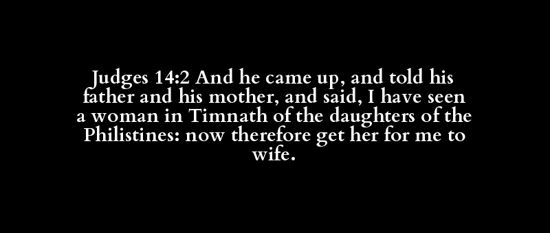 Judges 14:2 And he came up, and told his father and his mother, and said, I have seen a woman in Timnath of the daughters of the Philistines: now therefore get her for me to wife.