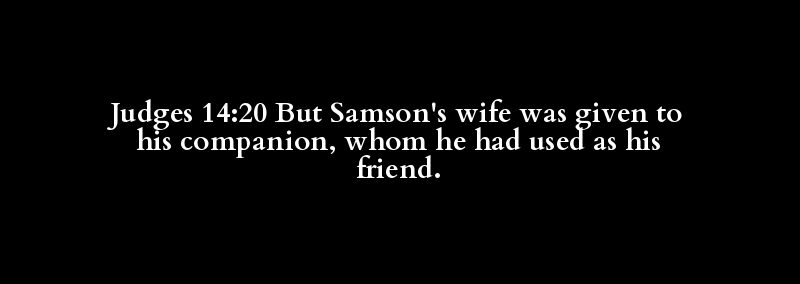 Judges 14:20 But Samson's wife was given to his companion, whom he had used as his friend.