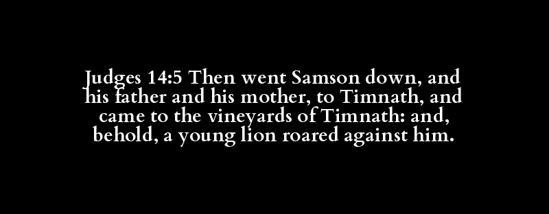 Judges 14:5 Then went Samson down, and his father and his mother, to Timnath, and came to the vineyards of Timnath: and, behold, a young lion roared against him.