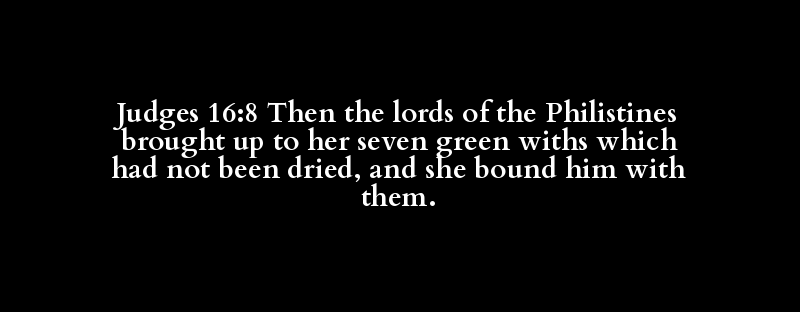 Judges 16:8 Then the lords of the Philistines brought up to her seven green withs which had not been dried, and she bound him with them.