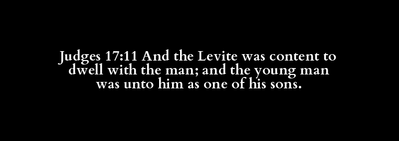 Judges 17:11 And the Levite was content to dwell with the man; and the young man was unto him as one of his sons.
