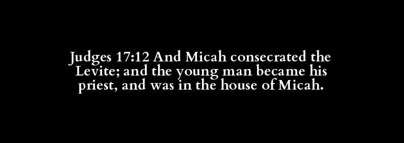 Judges 17:12 And Micah consecrated the Levite; and the young man became his priest, and was in the house of Micah.