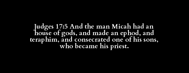 Judges 17:5 And the man Micah had an house of gods, and made an ephod, and teraphim, and consecrated one of his sons, who became his priest.
