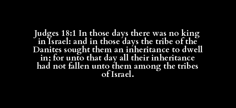 Judges 18:1 In those days there was no king in Israel: and in those days the tribe of the Danites sought them an inheritance to dwell in; for unto that day all their inheritance had not fallen unto them among the tribes of Israel.