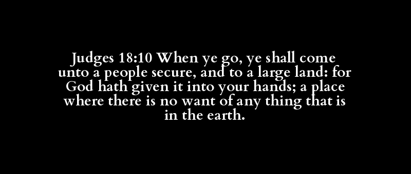 Judges 18:10 When ye go, ye shall come unto a people secure, and to a large land: for God hath given it into your hands; a place where there is no want of any thing that is in the earth.