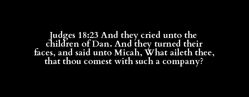 Judges 18:23 And they cried unto the children of Dan. And they turned their faces, and said unto Micah, What aileth thee, that thou comest with such a company?