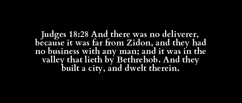 Judges 18:28 And there was no deliverer, because it was far from Zidon, and they had no business with any man; and it was in the valley that lieth by Bethrehob. And they built a city, and dwelt therein.