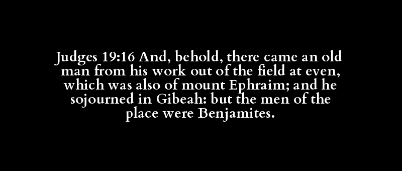 Judges 19:16 And, behold, there came an old man from his work out of the field at even, which was also of mount Ephraim; and he sojourned in Gibeah: but the men of the place were Benjamites.