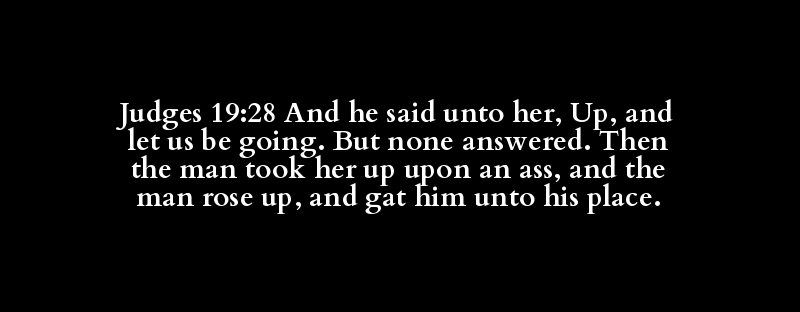 Judges 19:28 And he said unto her, Up, and let us be going. But none answered. Then the man took her up upon an ass, and the man rose up, and gat him unto his place.