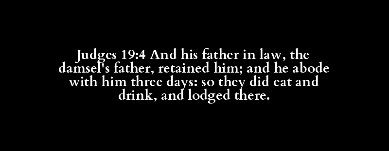 Judges 19:4 And his father in law, the damsel's father, retained him; and he abode with him three days: so they did eat and drink, and lodged there.