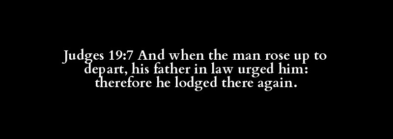 Judges 19:7 And when the man rose up to depart, his father in law urged him: therefore he lodged there again.