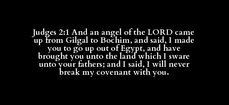 Judges 2:1 And an angel of the LORD came up from Gilgal to Bochim, and said, I made you to go up out of Egypt, and have brought you unto the land which I sware unto your fathers; and I said, I will never break my covenant with you.