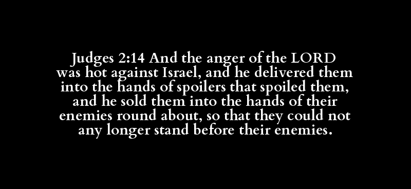 Judges 2:14 And the anger of the LORD was hot against Israel, and he delivered them into the hands of spoilers that spoiled them, and he sold them into the hands of their enemies round about, so that they could not any longer stand before their enemies.