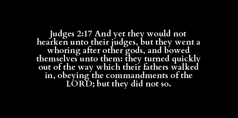 Judges 2:17 And yet they would not hearken unto their judges, but they went a whoring after other gods, and bowed themselves unto them: they turned quickly out of the way which their fathers walked in, obeying the commandments of the LORD; but they did not so.