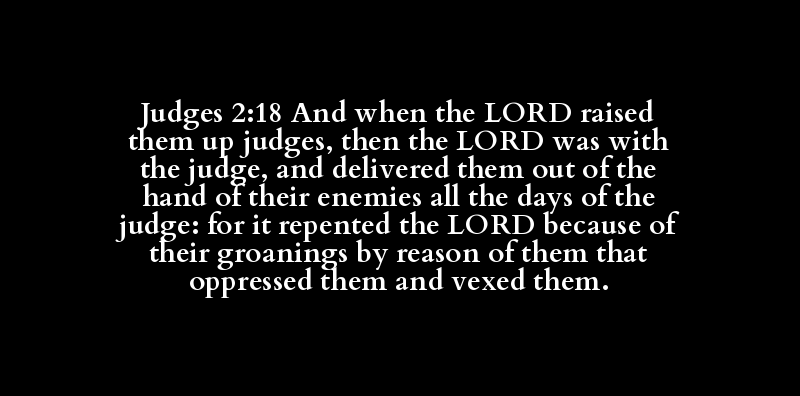 Judges 2:18 And when the LORD raised them up judges, then the LORD was with the judge, and delivered them out of the hand of their enemies all the days of the judge: for it repented the LORD because of their groanings by reason of them that oppressed them and vexed them.