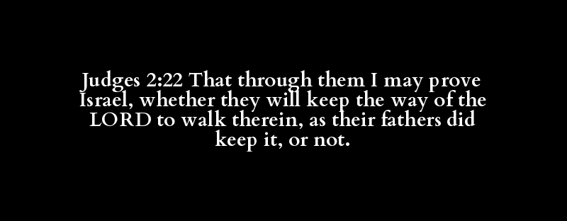 Judges 2:22 That through them I may prove Israel, whether they will keep the way of the LORD to walk therein, as their fathers did keep it, or not.