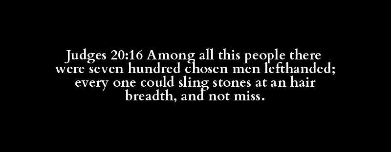 Judges 20:16 Among all this people there were seven hundred chosen men lefthanded; every one could sling stones at an hair breadth, and not miss.