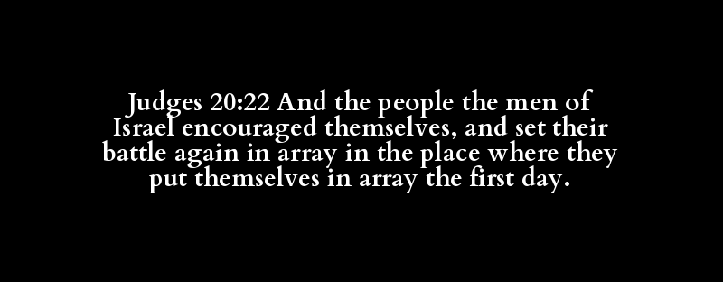 Judges 20:22 And the people the men of Israel encouraged themselves, and set their battle again in array in the place where they put themselves in array the first day.