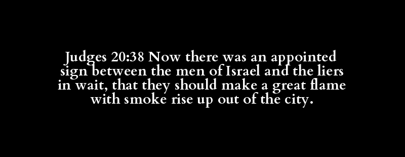 Judges 20:38 Now there was an appointed sign between the men of Israel and the liers in wait, that they should make a great flame with smoke rise up out of the city.