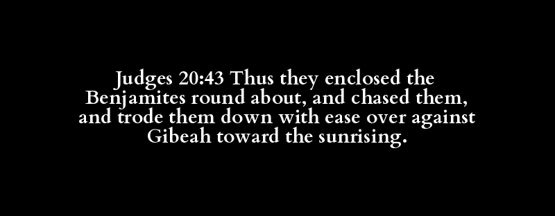 | beset round, compass about, be crowned.. | Benjamite, of Benjamin | beset round, compass about, be crowned.. | chase, put to flight, follow (after, o.. | archer, bend, come, draw, go (over), g.. | comfortable, ease, quiet, rest(-ing pl.. | (over) against, before, direct(-ly), f.. | Gibeah, the hill | + east side(-ward), sun (rising), + we.. | east(-ward) (side), (sun-)rising (of t.. |