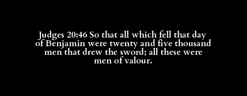 Judges 20:46 So that all which fell that day of Benjamin were twenty and five thousand men that drew the sword; all these were men of valour.