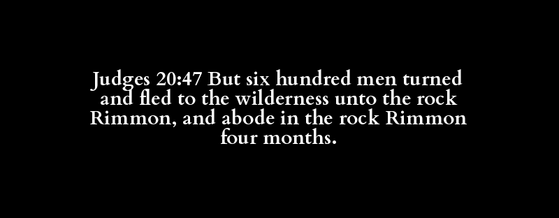 Judges 20:47 But six hundred men turned and fled to the wilderness unto the rock Rimmon, and abode in the rock Rimmon four months.