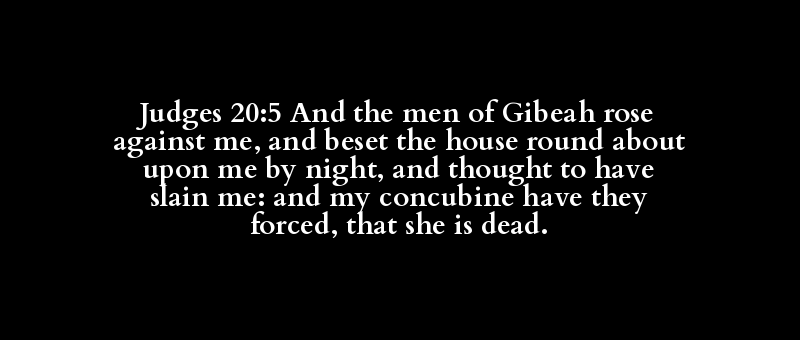 Judges 20:5 And the men of Gibeah rose against me, and beset the house round about upon me by night, and thought to have slain me: and my concubine have they forced, that she is dead.