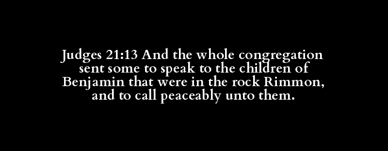 Judges 21:13 And the whole congregation sent some to speak to the children of Benjamin that were in the rock Rimmon, and to call peaceably unto them.