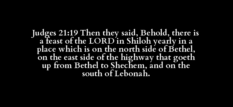 Judges 21:19 Then they said, Behold, there is a feast of the LORD in Shiloh yearly in a place which is on the north side of Bethel, on the east side of the highway that goeth up from Bethel to Shechem, and on the south of Lebonah.