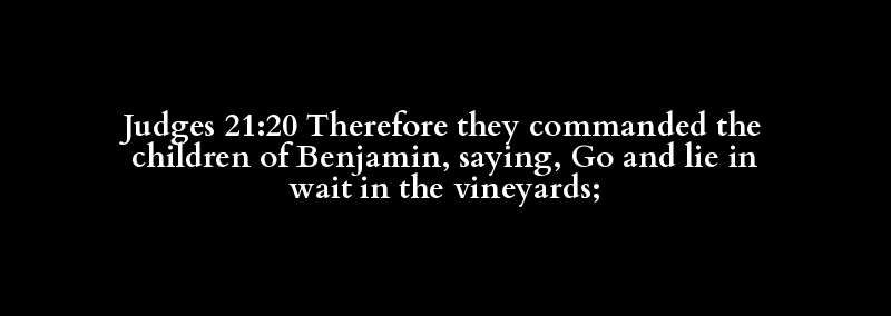 Judges 21:20 Therefore they commanded the children of Benjamin, saying, Go and lie in wait in the vineyards;