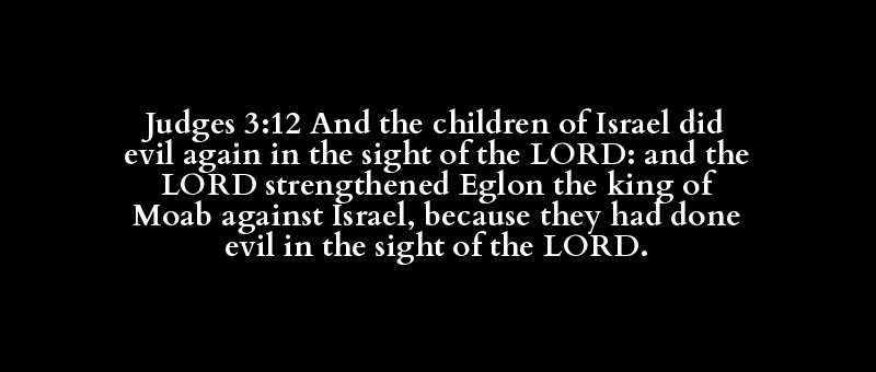 Judges 3:12 And the children of Israel did evil again in the sight of the LORD: and the LORD strengthened Eglon the king of Moab against Israel, because they had done evil in the sight of the LORD.