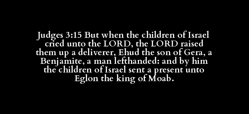 Judges 3:15 But when the children of Israel cried unto the LORD, the LORD raised them up a deliverer, Ehud the son of Gera, a Benjamite, a man lefthanded: and by him the children of Israel sent a present unto Eglon the king of Moab.