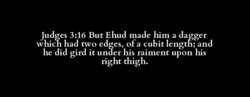 Judges 3:16 But Ehud made him a dagger which had two edges, of a cubit length; and he did gird it under his raiment upon his right thigh.