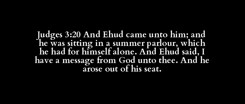 Judges 3:20 And Ehud came unto him; and he was sitting in a summer parlour, which he had for himself alone. And Ehud said, I have a message from God unto thee. And he arose out of his seat.