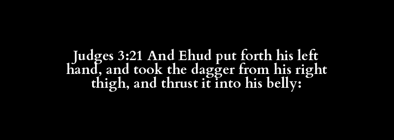 Judges 3:21 And Ehud put forth his left hand, and took the dagger from his right thigh, and thrust it into his belly: