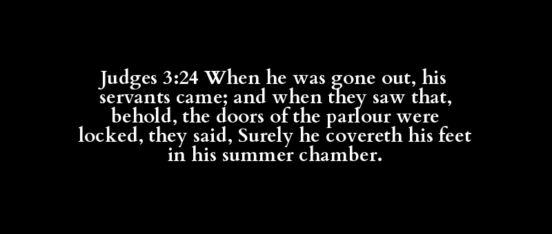 Judges 3:24 When he was gone out, his servants came; and when they saw that, behold, the doors of the parlour were locked, they said, Surely he covereth his feet in his summer chamber.