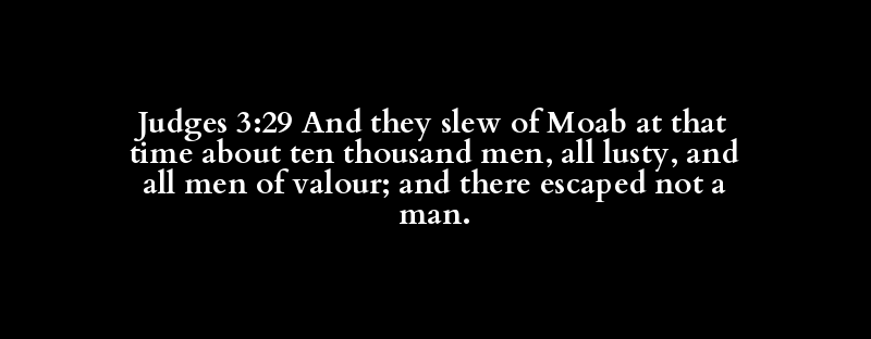 Judges 3:29 And they slew of Moab at that time about ten thousand men, all lusty, and all men of valour; and there escaped not a man.