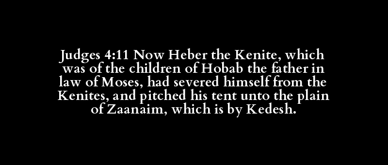 Judges 4:11 Now Heber the Kenite, which was of the children of Hobab the father in law of Moses, had severed himself from the Kenites, and pitched his tent unto the plain of Zaanaim, which is by Kedesh.