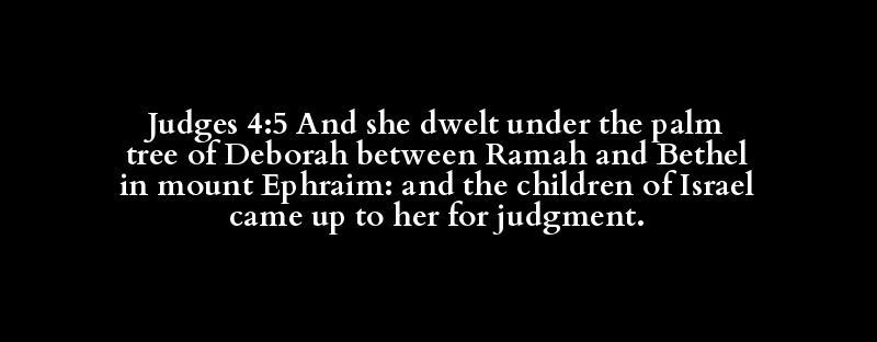 Judges 4:5 And she dwelt under the palm tree of Deborah between Ramah and Bethel in mount Ephraim: and the children of Israel came up to her for judgment.