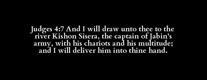 Judges 4:7 And I will draw unto thee to the river Kishon Sisera, the captain of Jabin's army, with his chariots and his multitude; and I will deliver him into thine hand.