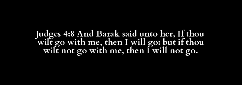 Judges 4:8 And Barak said unto her, If thou wilt go with me, then I will go: but if thou wilt not go with me, then I will not go.