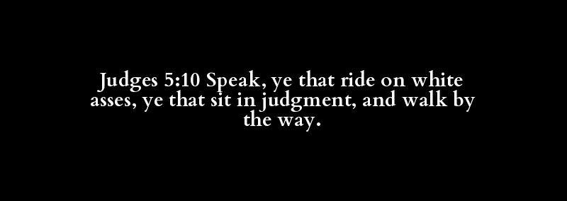 Judges 5:10 Speak, ye that ride on white asses, ye that sit in judgment, and walk by the way.