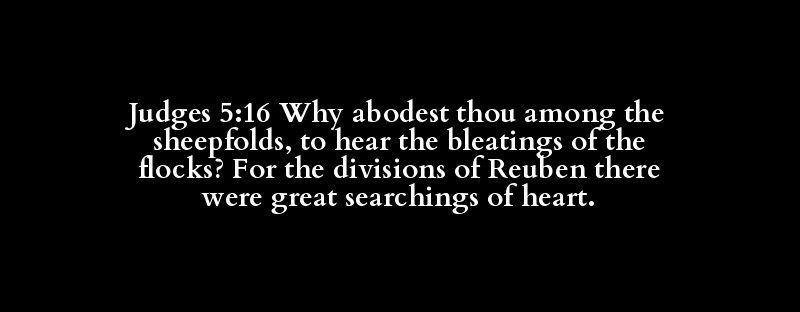 Judges 5:16 Why abodest thou among the sheepfolds, to hear the bleatings of the flocks? For the divisions of Reuben there were great searchings of heart.