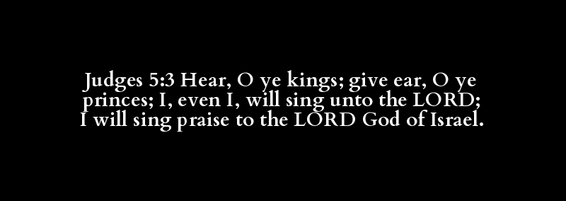 Judges 5:3 Hear, O ye kings; give ear, O ye princes; I, even I, will sing unto the LORD; I will sing praise to the LORD God of Israel.