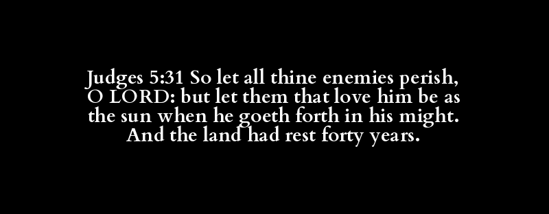 Judges 5:31 So let all thine enemies perish, O LORD: but let them that love him be as the sun when he goeth forth in his might. And the land had rest forty years.
