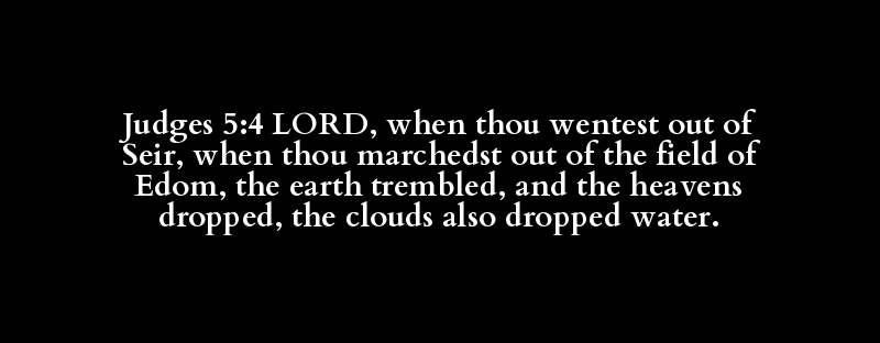 Judges 5:4 LORD, when thou wentest out of Seir, when thou marchedst out of the field of Edom, the earth trembled, and the heavens dropped, the clouds also dropped water.