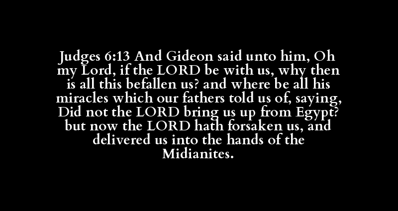 Judges 6:13 And Gideon said unto him, Oh my Lord, if the LORD be with us, why then is all this befallen us? and where be all his miracles which our fathers told us of, saying, Did not the LORD bring us up from Egypt? but now the LORD hath forsaken us, and delivered us into the hands of the Midianites.