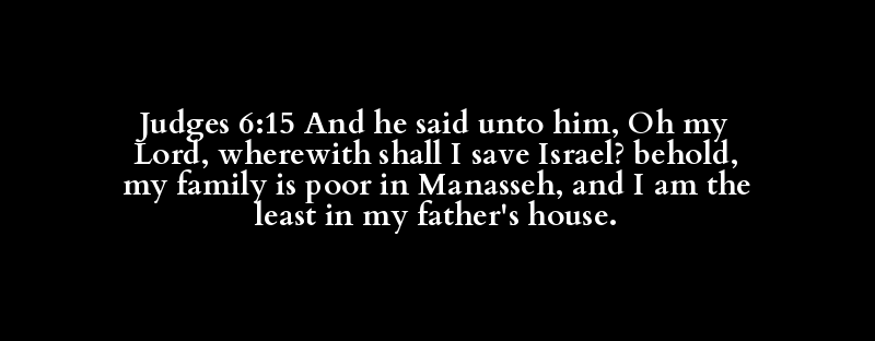 Judges 6:15 And he said unto him, Oh my Lord, wherewith shall I save Israel? behold, my family is poor in Manasseh, and I am the least in my father's house.