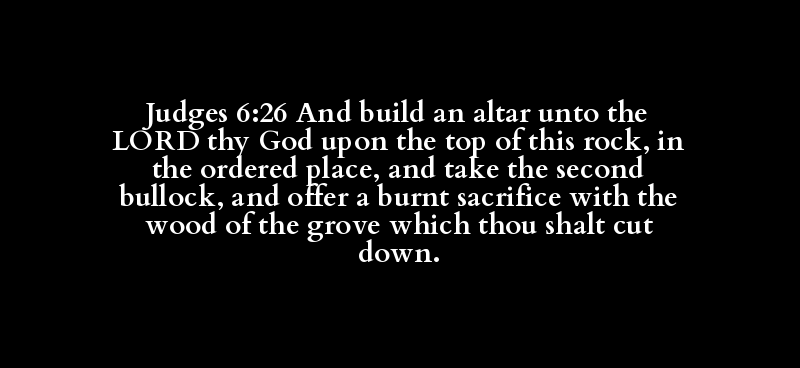 Judges 6:26 And build an altar unto the LORD thy God upon the top of this rock, in the ordered place, and take the second bullock, and offer a burnt sacrifice with the wood of the grove which thou shalt cut down.