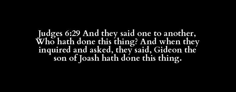 Judges 6:29 And they said one to another, Who hath done this thing? And when they inquired and asked, they said, Gideon the son of Joash hath done this thing.